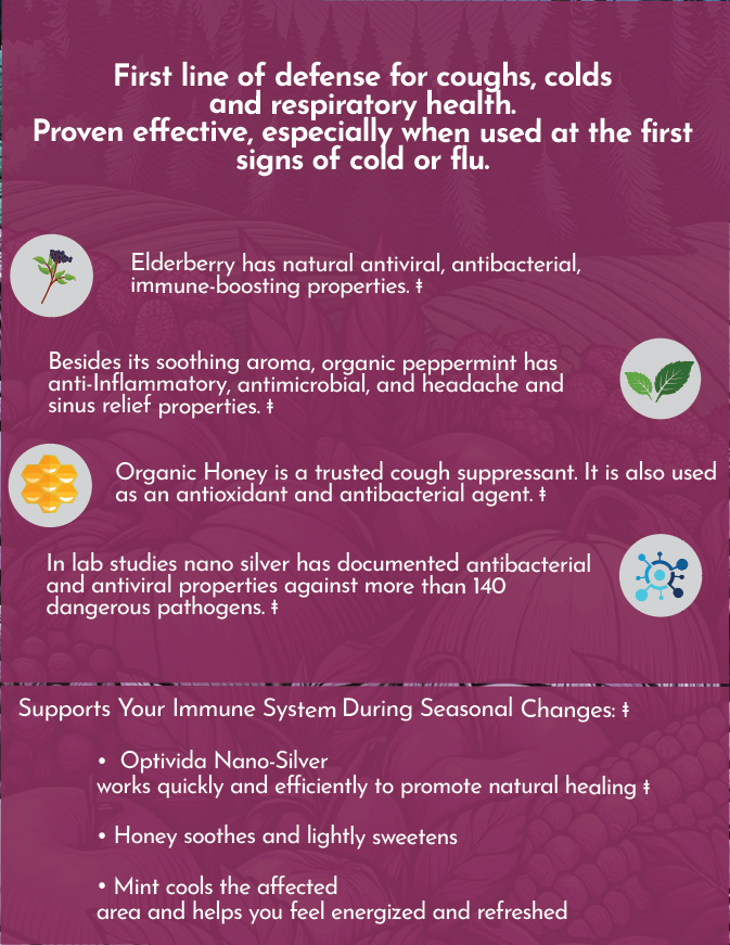 Optivida’s nano-silver helps defend where germs often start—your mouth and throat. It supports your body’s natural ability to fight off unwanted bacteria, keeping you feeling strong and well.