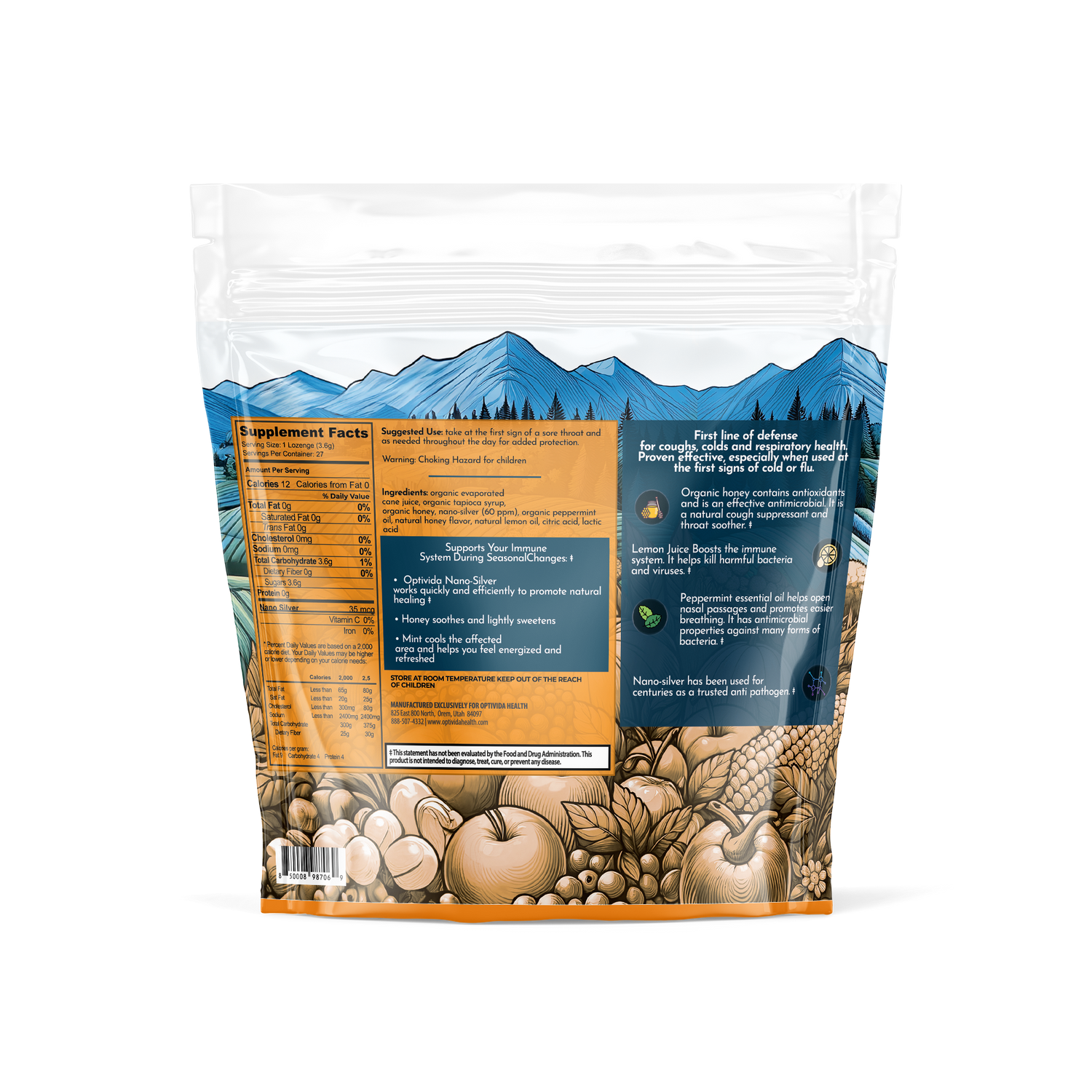 Natural Flavor: Our nano-silver lozenges were made with organic honey, and peppermint oil for a sweet, soothing flavor.